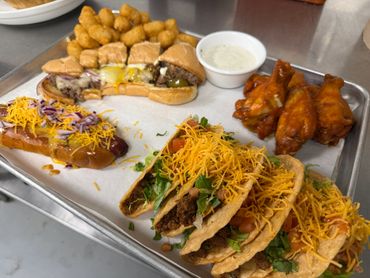 Choice of Texas Wagyu Chili or Diced Chicken, Sour Cream, Pico de Gallo, Guacamole, Sliced Jalapenos